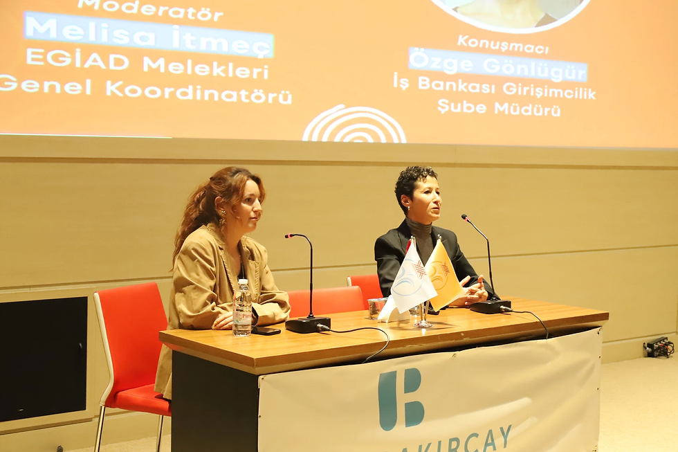Moderatörlüğü ve fikirleri için EGİAD Melekleri Genel Koordinatörü Melisa Itmec'e ve düşüncelerini deneyimlerini bizlerle paylaştığı için Türkiye İş Bankası Girişimcilik Şube Müdürü Özge Gönlügür'e teşekkür ederiz.